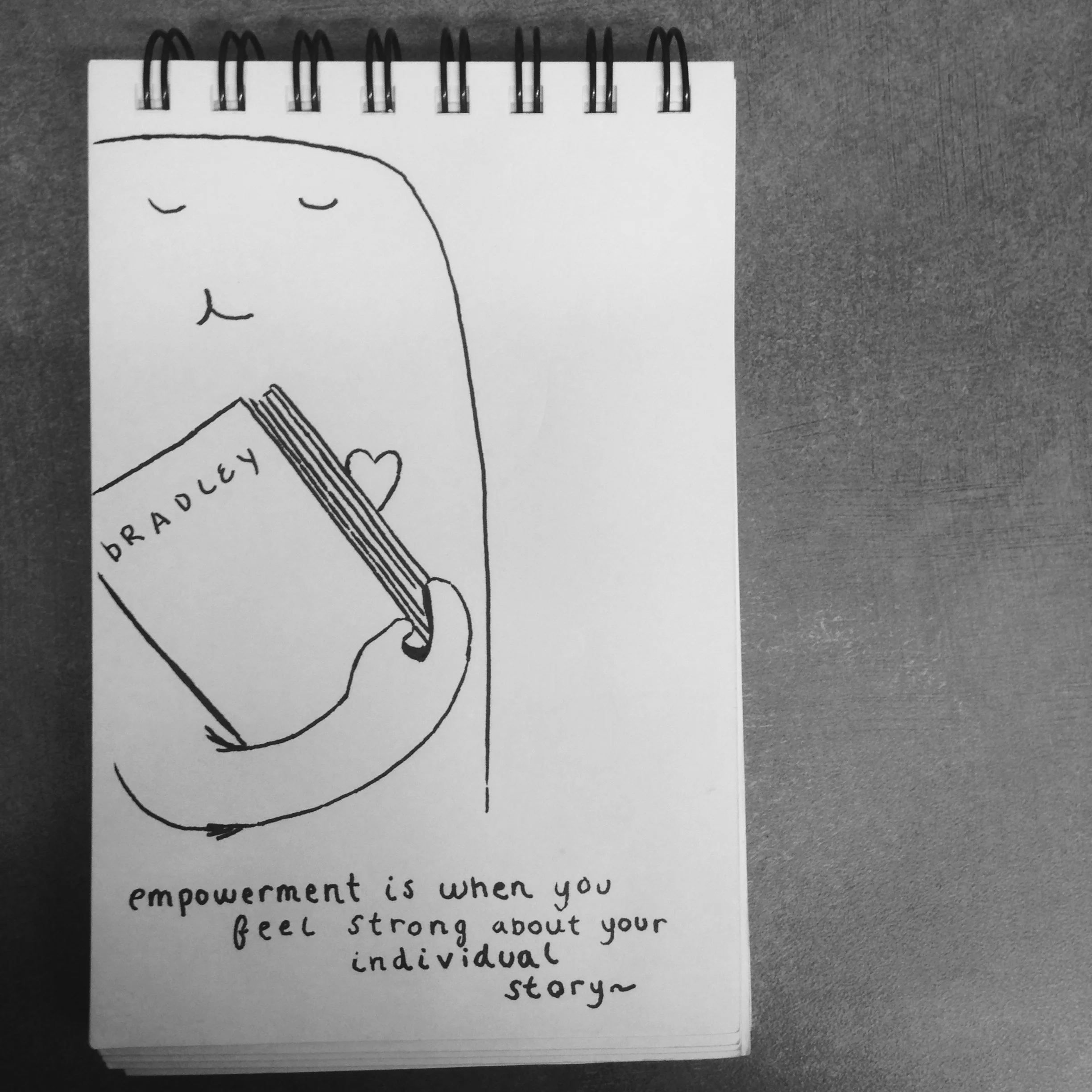 the drawing's caption was said by my professor in my Soc Welfare grad seminar today and i really resonated with it. in short, people are not empowered, but rather people empower themselves and one of the easiest ways one can feel empowered is by being confident in one's individual story. since coming to college and finally learning about my pilipinx culture, i've learned that my culture has the honor of passing hxstory through stories.