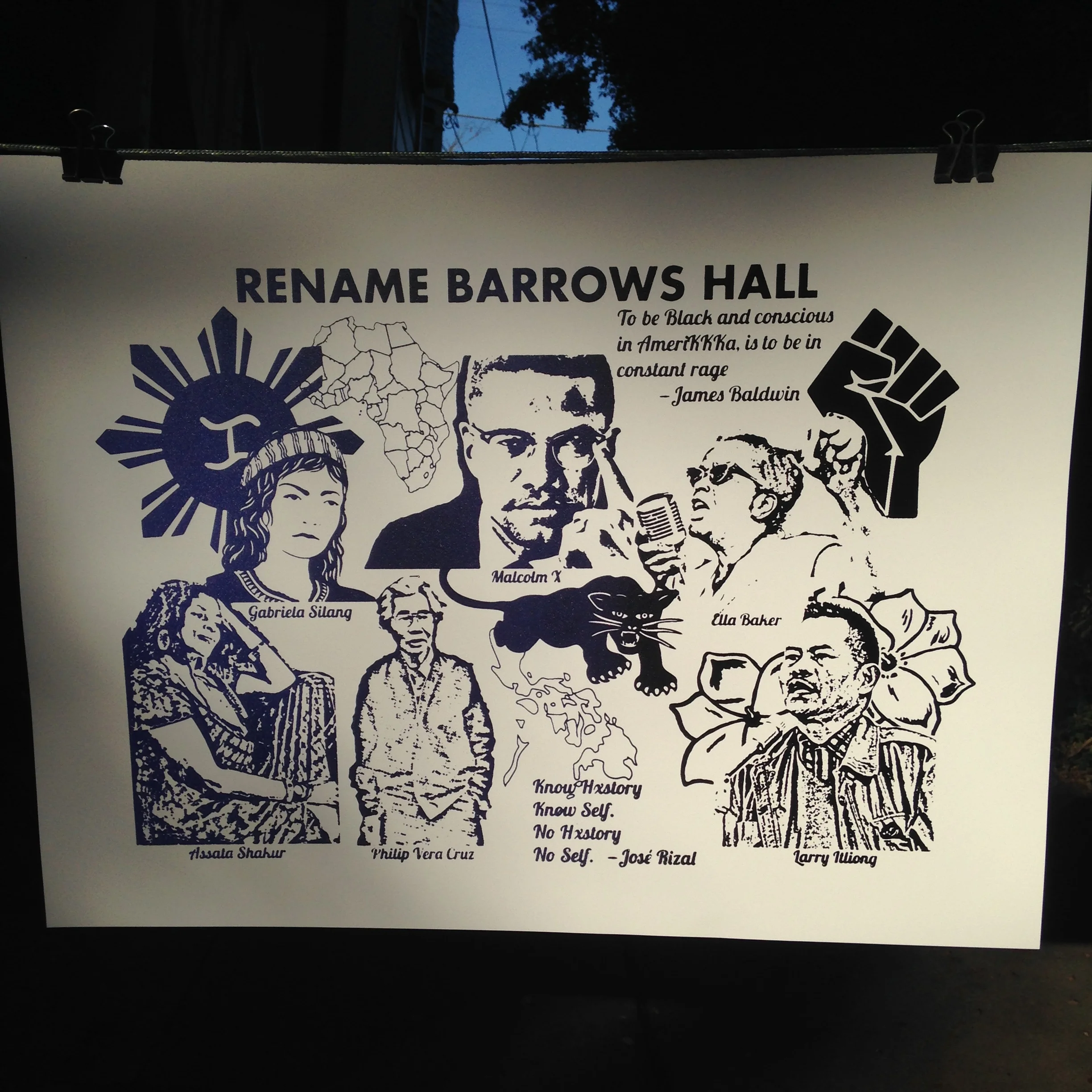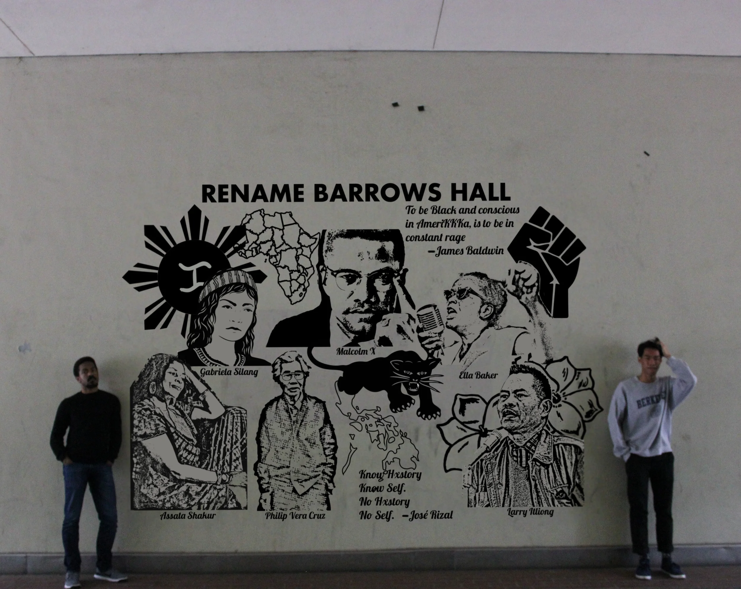 Like past demands to rename this building, the artists behind this piece echo the sentiments that Barrows Hall be renamed. We dream that a mural of revolutionaries of color chosen by students of color be painted on the wall of this wind tunnel in order to affirm our existence here. We know that physical spaces like the Multicultural Community Center and the Centers for Educational Justice and Community Engagement exist. We know that that student organizations fill the gaps. Yet these spaces were fought for by students, won by students, and we continue this tradition because we still have to fight today for affirming spaces. Barrows Hall must be decolonized. Rename Barrows Hall.