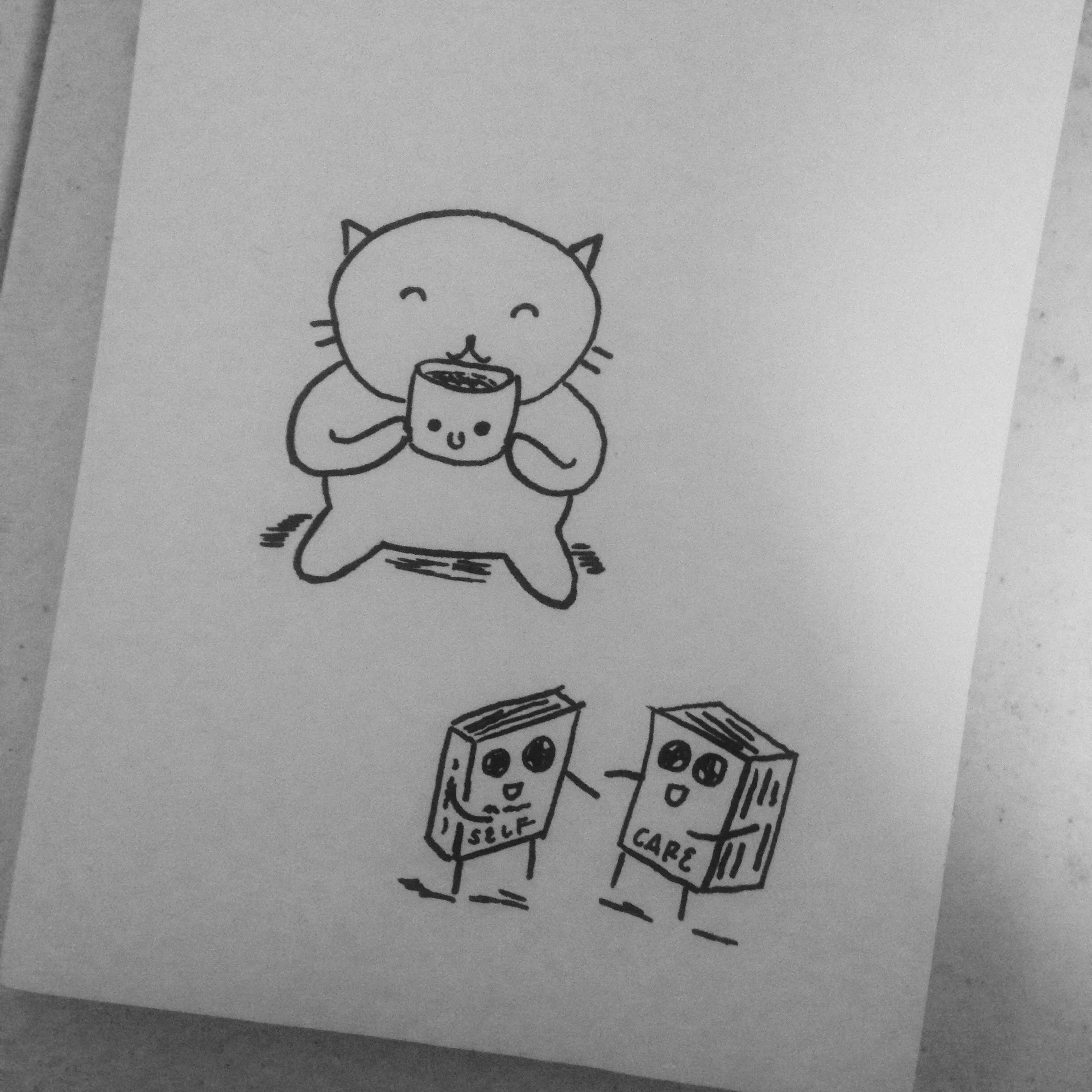she said, hugging, books, tea. i said, let me draw a cat drinking tea and books hugging. so i did.